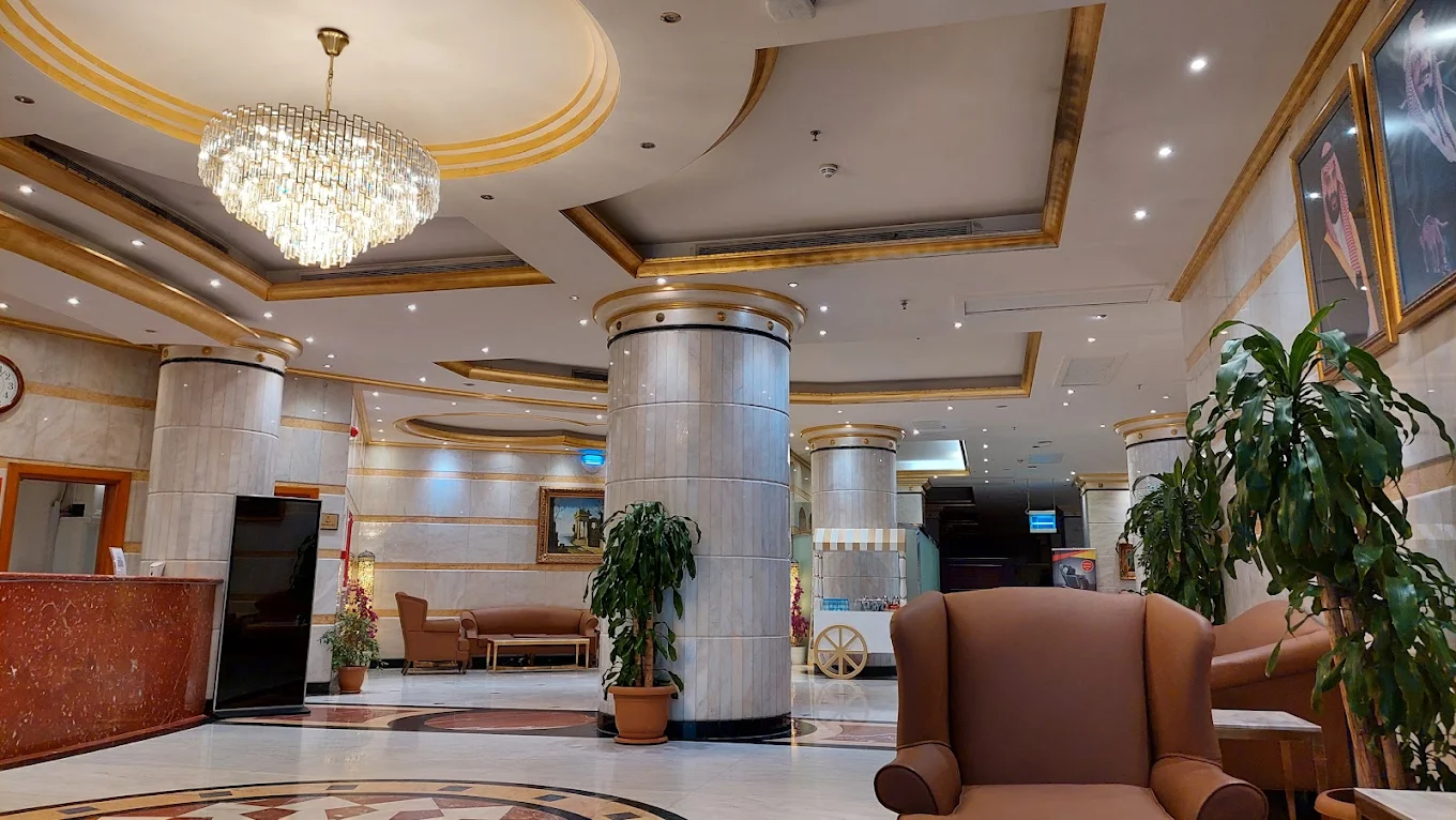 بهو واسع وفخم: أول ما يلفت انتباهك هو اللوبي (البهو) الواسع والمريح، المجهز بجلسات فاخرة لاستقبال الضيوف، مما يمنح شعوراً بالرحابة منذ لحظة الوصول.